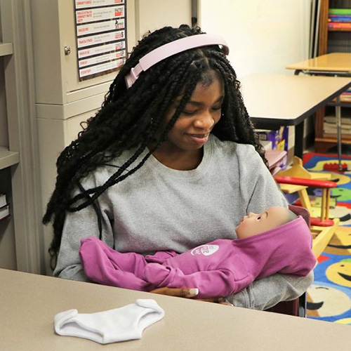 リアルケアベビー4は、「ミルク・おむつ交換・げっぷ・だっこ・あやし遊び」を求めて、実際の乳児と同じように、ランダムに泣き出します。体験者がID を身に着けて世話をすることで、リアルケアベビーがID を認識し、ケア内容を詳細に記録します。育児経験のない学生が、実際の育児と同じように“24 時間の世話”を体験することで、育児をしている人への理解や乳児の世話そのものに対する理解を深められます。
