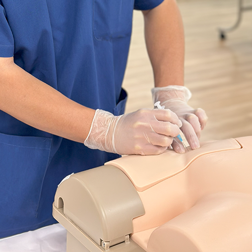エコー対応で血管を内蔵した交換パッドはリアルな触感と逆血を再現し、メンテナンスも容易です。